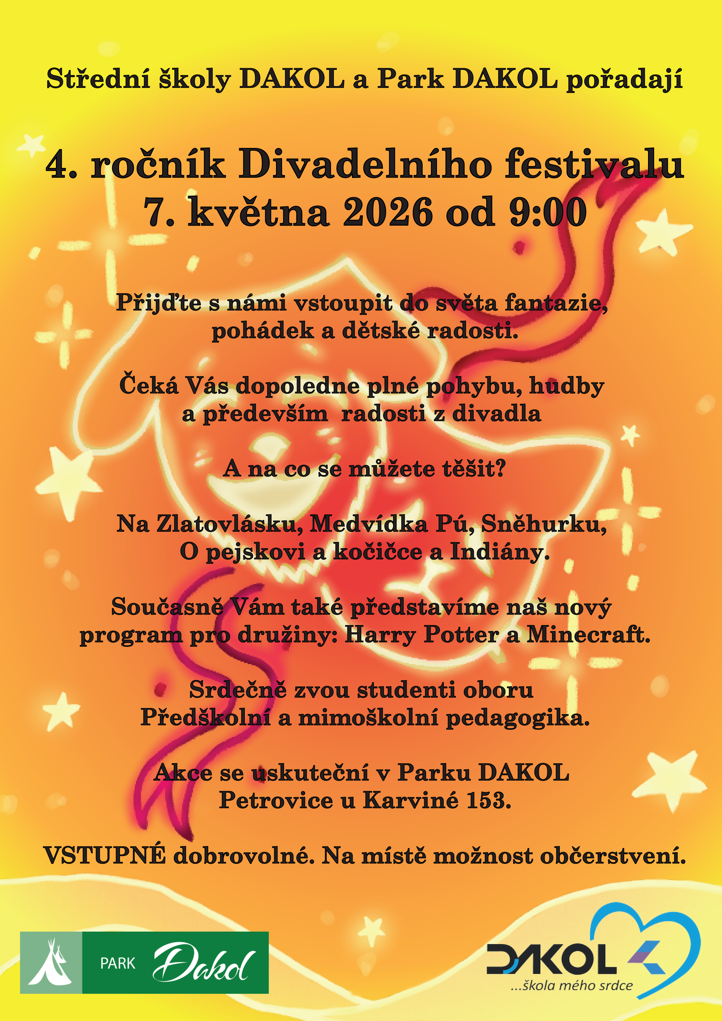 Přijďte se podívat na divadlo, které se uskuteční v parku Hotelu Dakol dne 7. května 2026 - viz příloha